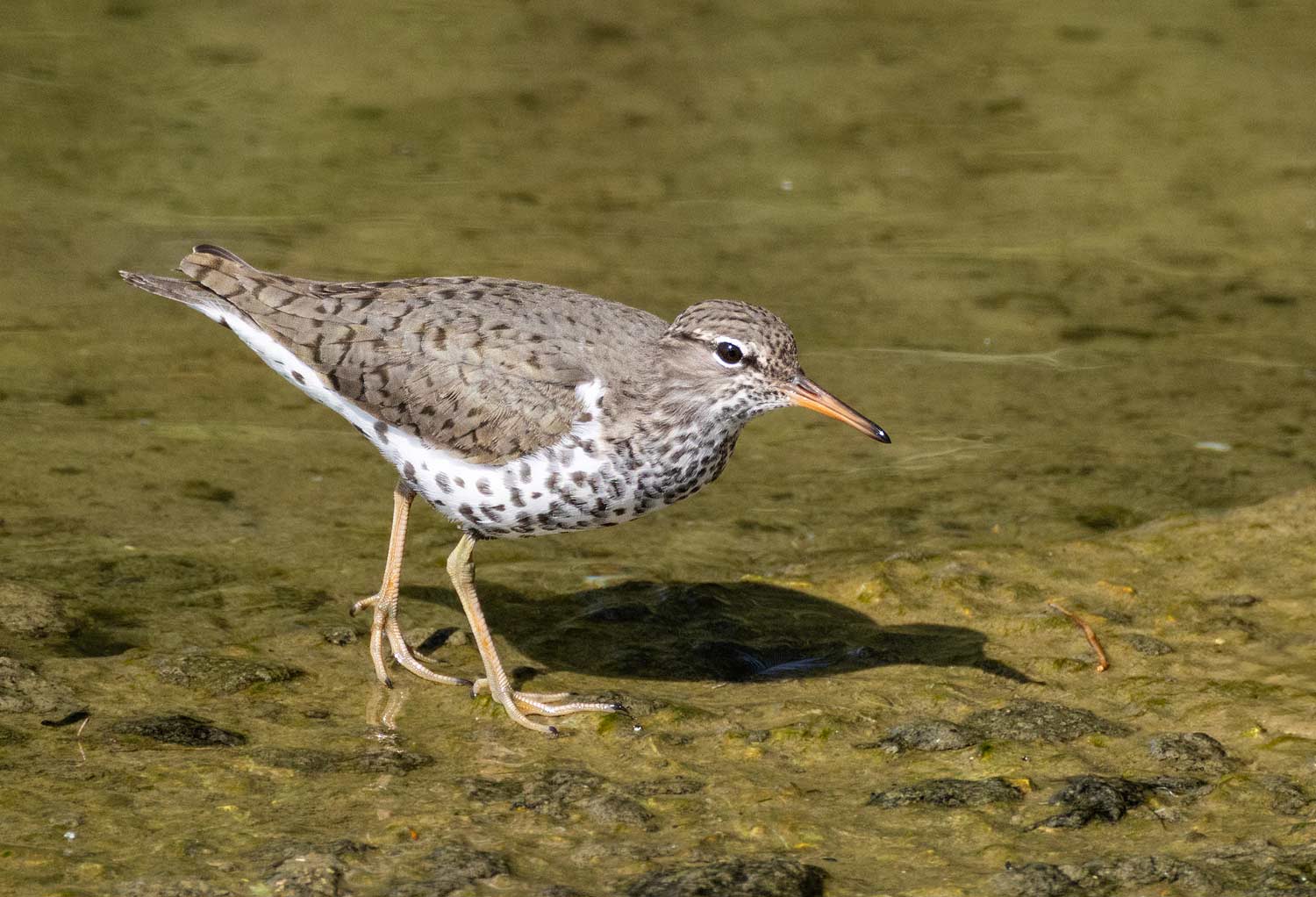 Last Thursday, 1st May I got up intending to visit Welney WWT but a flash on Birdguides confirmed that a Spotted Sandpiper had been identified on the dam at Grafham Water. All change as I had never seen one before. So parking up, I walked along the dam where a dozen or so birders were peering over the parapet. I joined them and there it was, totally unconcerned by the excitement it had created.