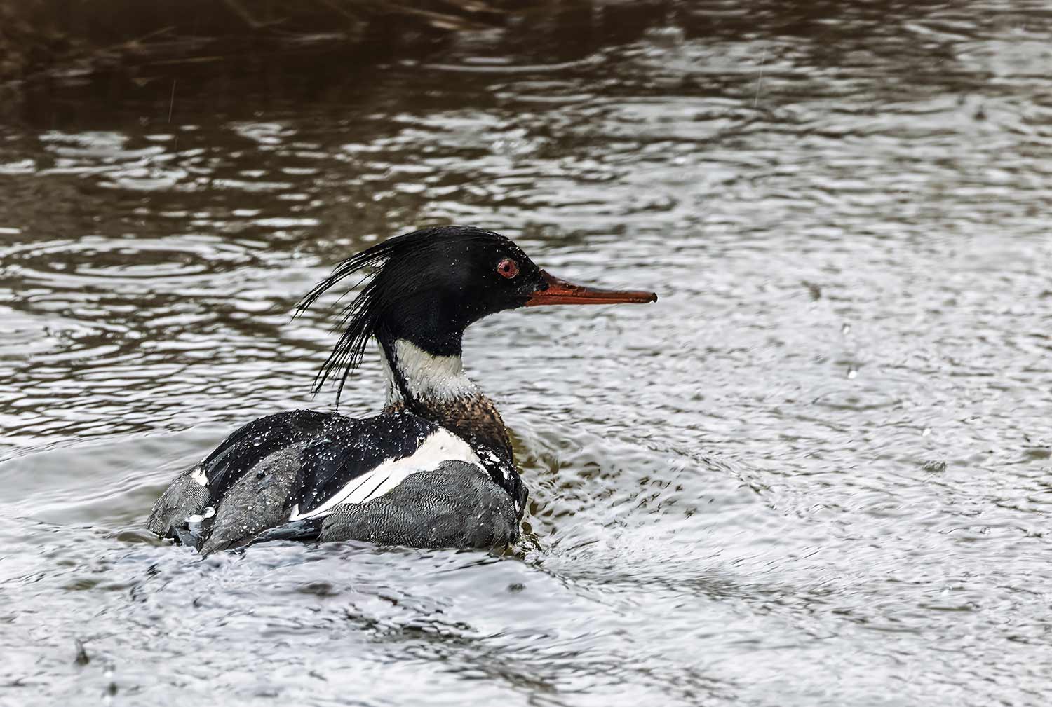 As we were driving out, I noticed what I thought was a Goosander in a channel. Stopping and reversing, it was a drake Red-breasted Merganser that proceeded to quickly paddle it's way into the distance but I managed a few shots, not the best, a record shot shall we say!!!