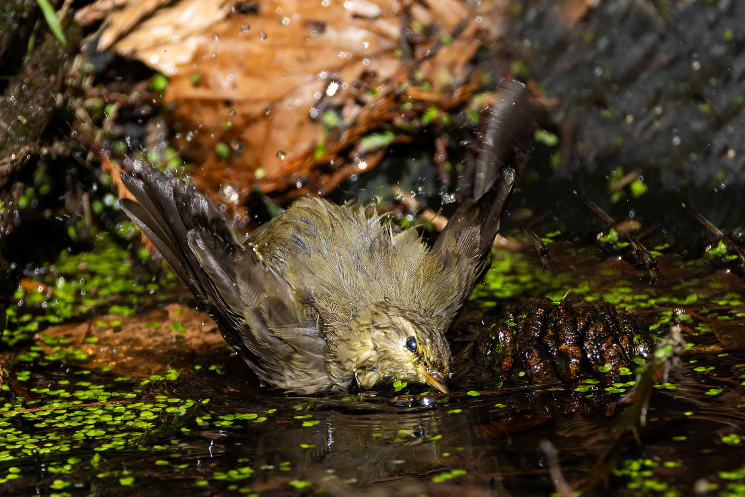 After an hour or so, we moved on to Mayday Farm, a well forested area, where there is a small trackside pool that really attracts the birds to drink with a good selection, although photography was difficult because of the shadows. Still here is a selection (after some heavy editing) of some common bathing birds.