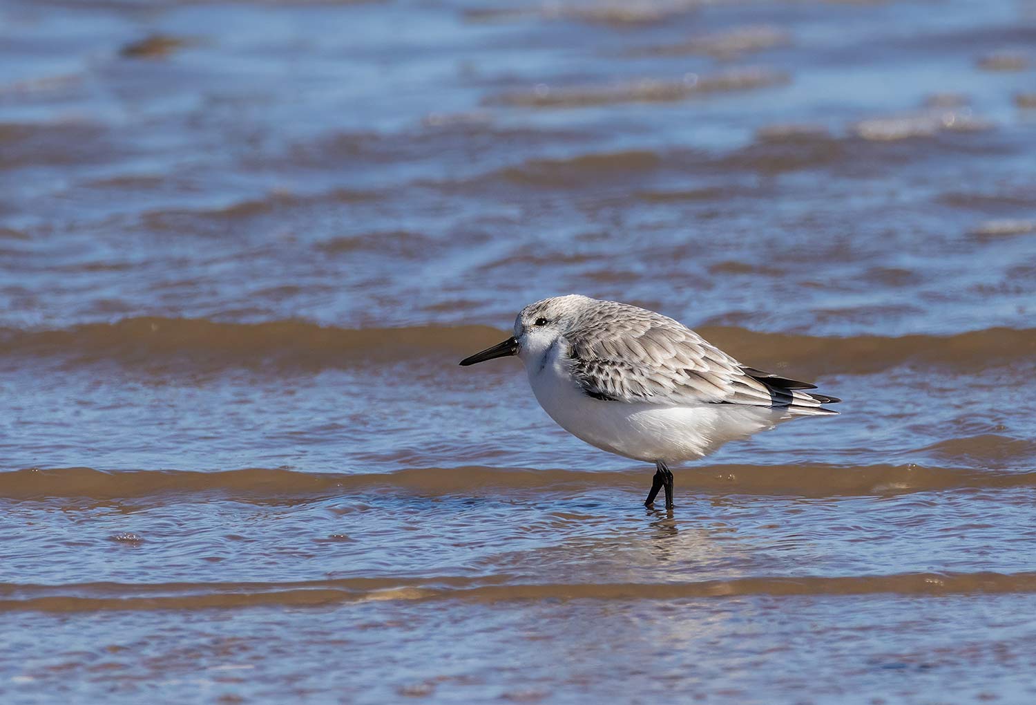 So I walked up to the beach and also found nothing of interest except for a small flock of Sanderling on the tide line. Now I love photographing Sanderling taking a few long distant shots before trying to get closer.