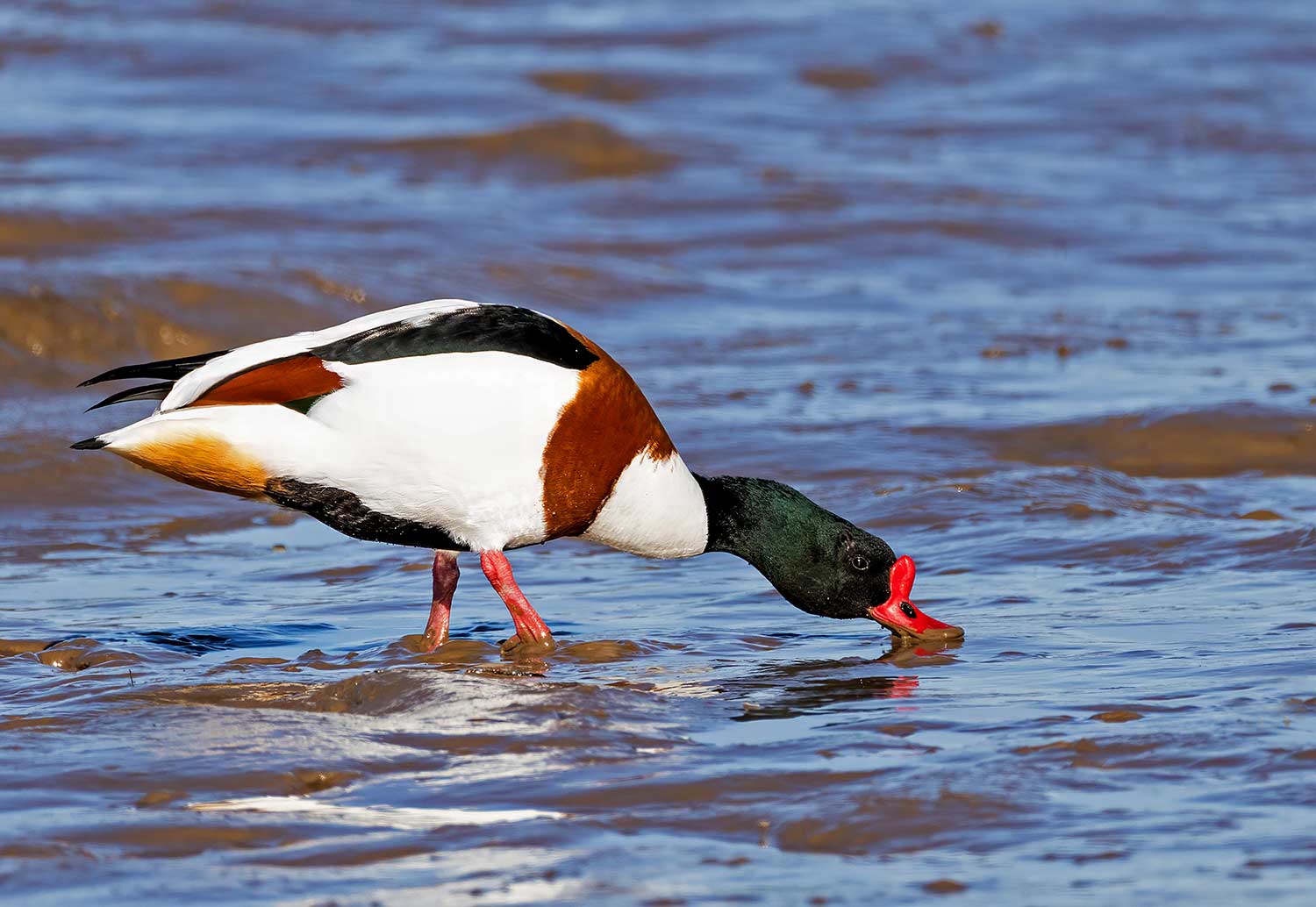 but nothing at all at Holkham so, once again, I retraced my steps and called in at Brancaster Staithe harbour. By this time the tide had ebbed so there was some mud showing and a couple of drake Shelduck showed well in the sunlight.