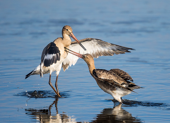 With nothing on the beach, I retraced my steps and started to watch a couple of Black-tailed Godwits apparently sizing each other up.
