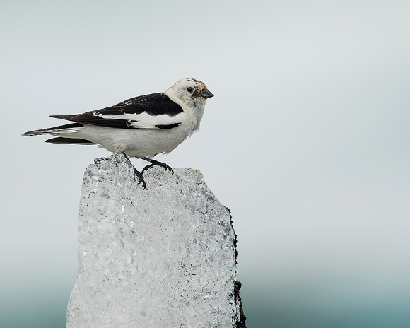 Paul Hobson had this vision of a male Snow Bunting on ice and went to great lengths to get a block from the beach and transport it in the bus to the nesting area and set it up - quite on effort - that eventually paid off.