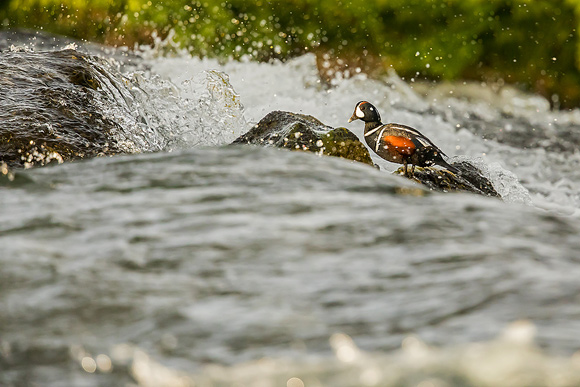 Returning to the main river, I even managed a shot of the Harlequin Duck perched on an island in the middle of the river race, one of the sought-after shots but the high river level meant that there were few islands so opportunities were scarce.