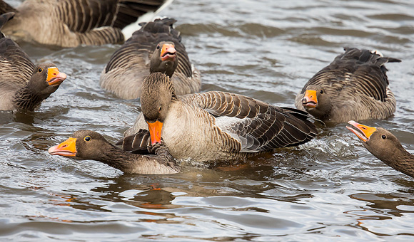 There was the usual group of Greylag Geese. I ignored them until they started to create a racket. A couple were fighting (or probably mating - difficult to know which) with others looking on creating the noise. It resembled a prize fight.