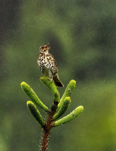 Just one photo from there was a Song Thrush singing it's heart out in the rain - distant but worth a shot anyway.